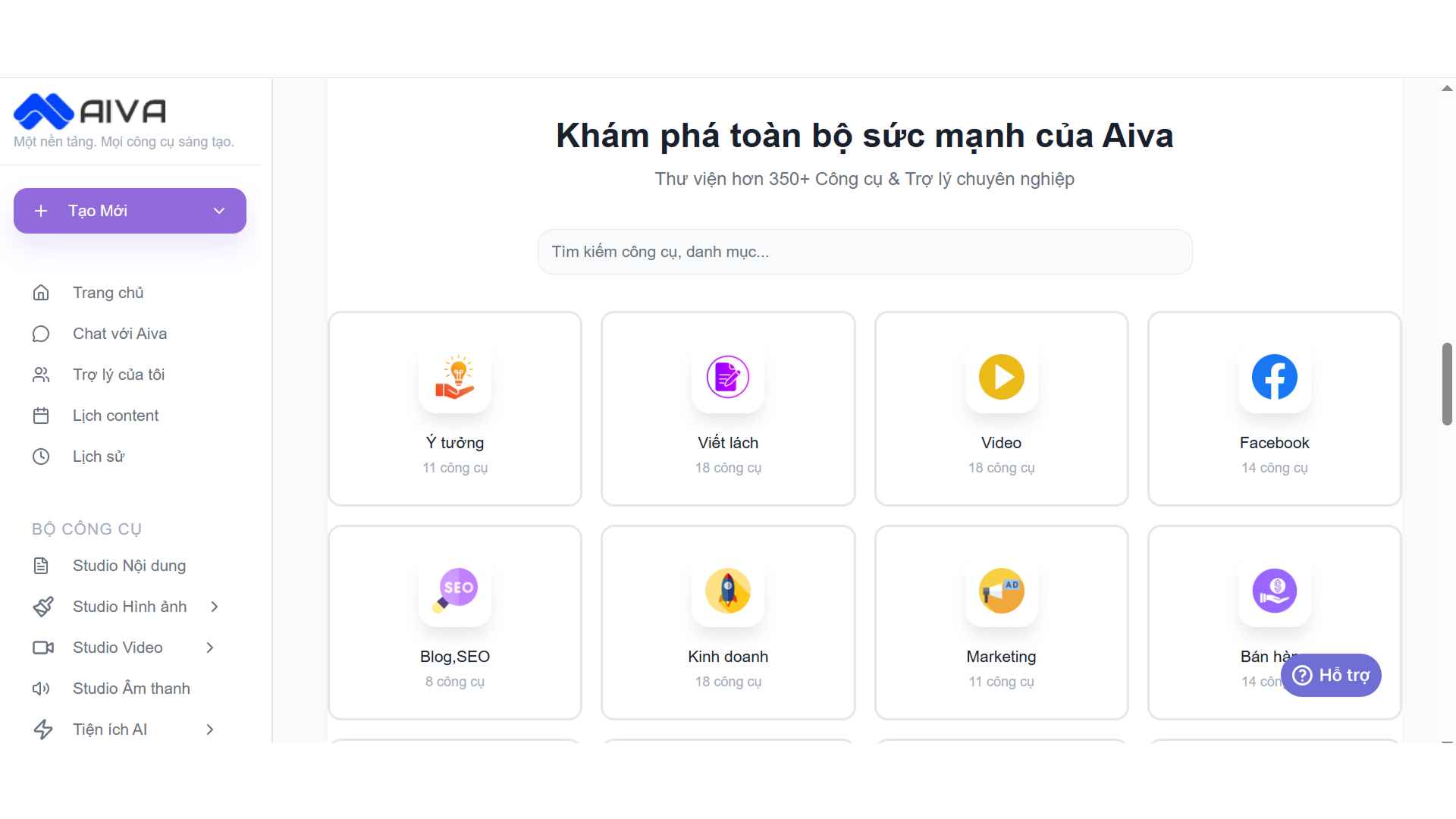 AIVA được định vị như một “trợ lý AI marketing” thông minh, có khả năng hỗ trợ người dùng ở nhiều khâu: từ tạo nội dung quảng cáo, viết caption, gợi ý hình ảnh minh họa, lên kế hoạch truyền thông, cho đến thiết kế banner, video hay đề xuất chiến lược tiếp cận khách hàng.